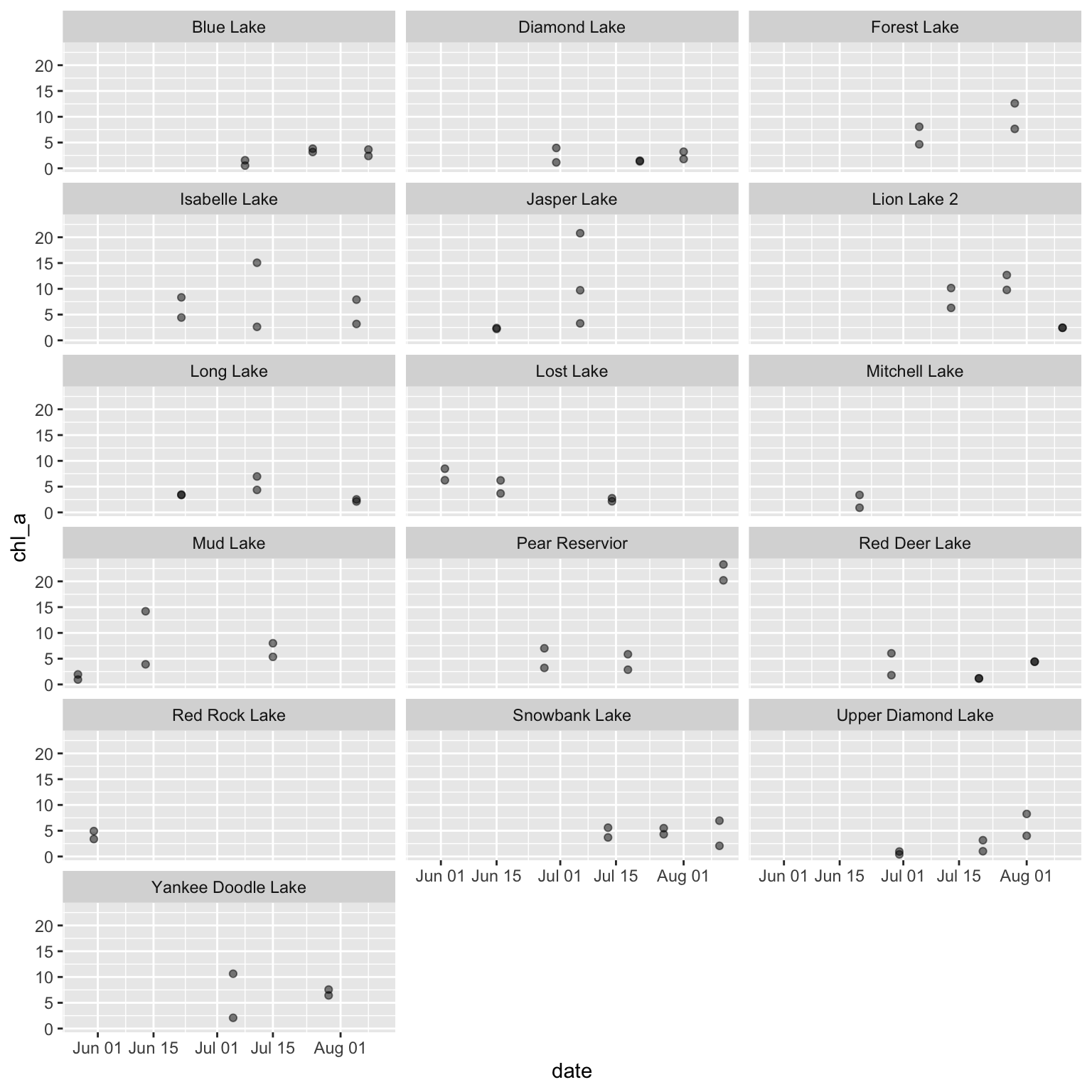 Exploratory data visualization is an important part of any scientific project. Before launching into analysis it is valuable to make some simple plots to scan the contents. These plots may reveal any number of issues, such as typos, sensor calibration problems or differences in the protocol over time.
