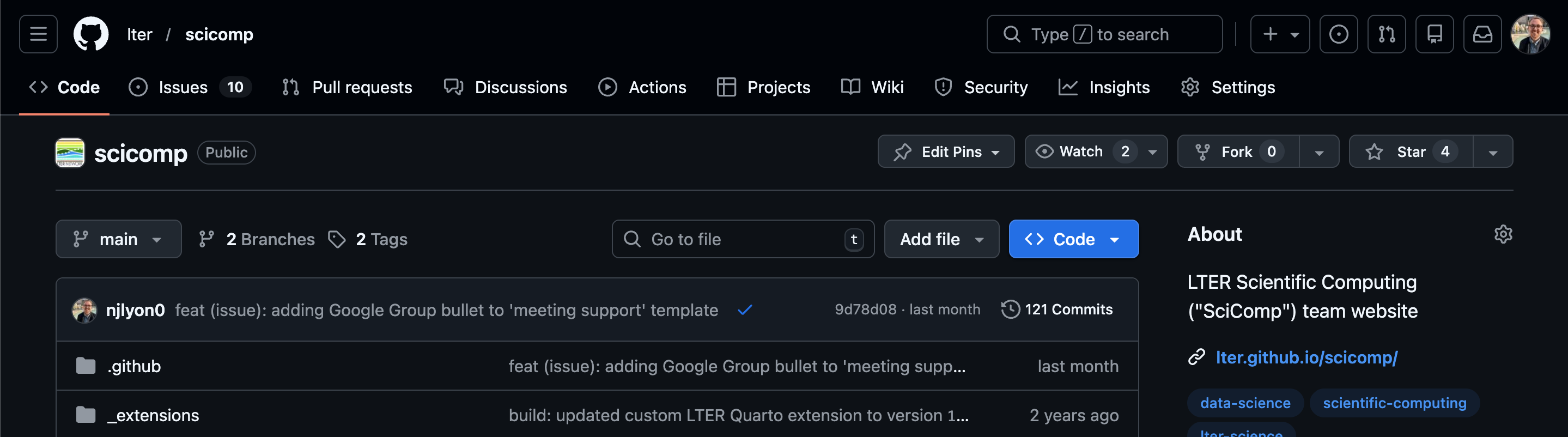 An additional function that may be outside of the scope of what you need to use within your team is that it allows non-members to flag issues that they’ve had with code written by your team or request additional functionality that doesn’t yet exist in your framework. Depending on your use of packages in R you may have already opened an issue on an existing R package or workshop materials hosted in GitHub to do just that!