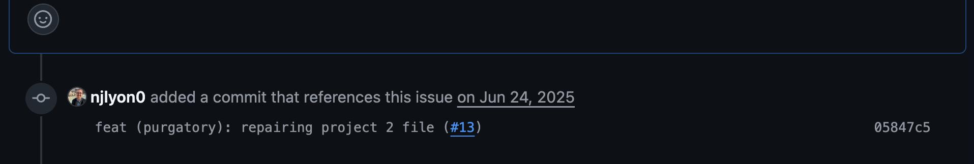 The other feature is a little less obvious in the moment but wonderful for documenting how issues and code edits can be in conversation with one another. The commit message will show up in the comment history of the issue. So, when you are scrolling through the comments of an issue, commits that reference that issue will be visible and in chronological order with the comments. So if one comment said “can you fix this?” there could be a commit immediately below it where the commit message is “fixed per #12”.